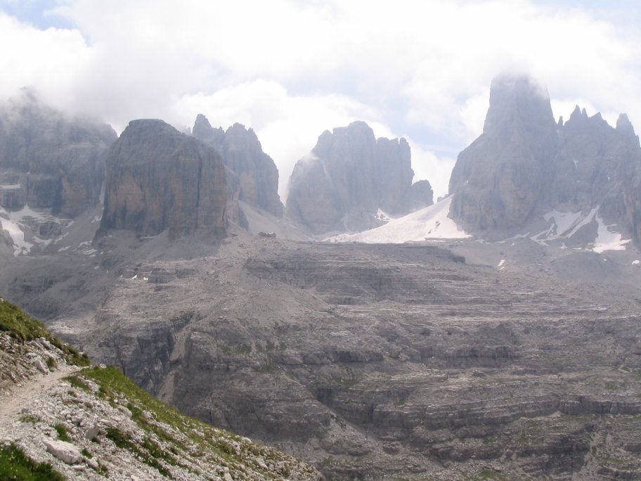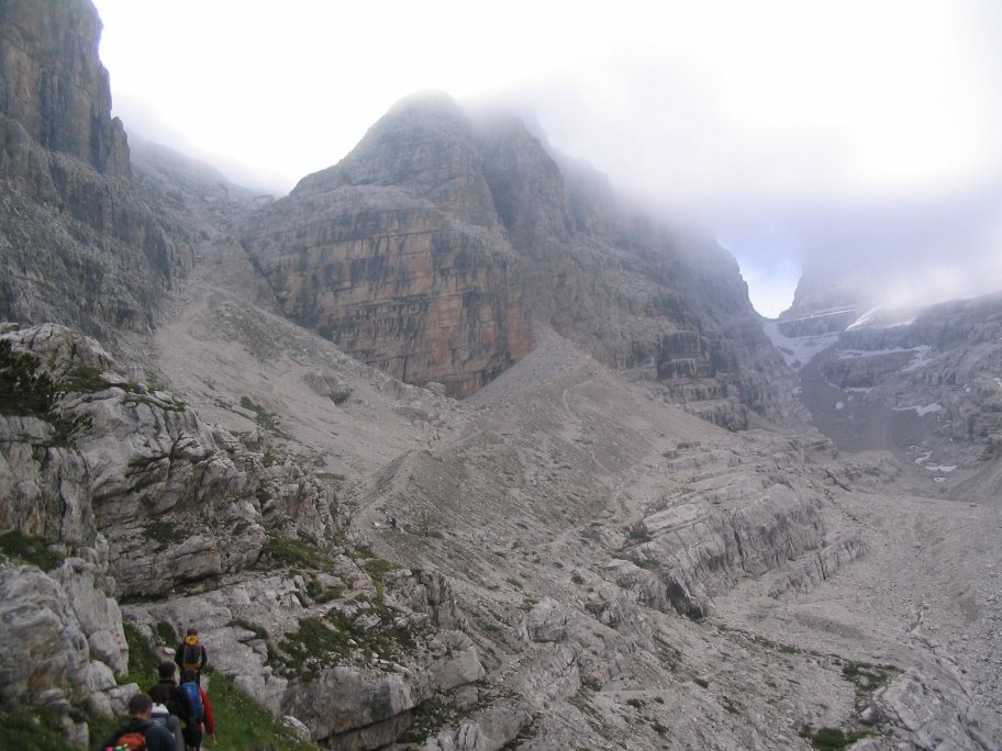 Da für die nächsten Tage schlechteres Wetter angesagt war, stiegen wir noch am Nachmittag 1000 Höhenmeter über die Rif. Brentei bis nach Madonna di Campiglio (1550 m) ab, wo unser Auto stand.