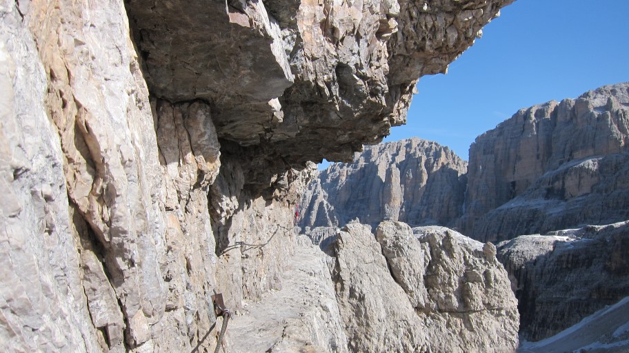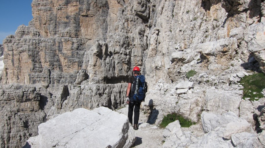 Hier begann der Einstieg in den Klettersteig "Sentiero Bocchette Centrale". Rechts des Sattels sind die Leitern des Klettersteigs erkennbar.