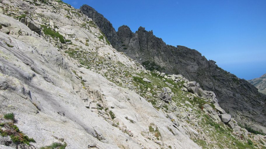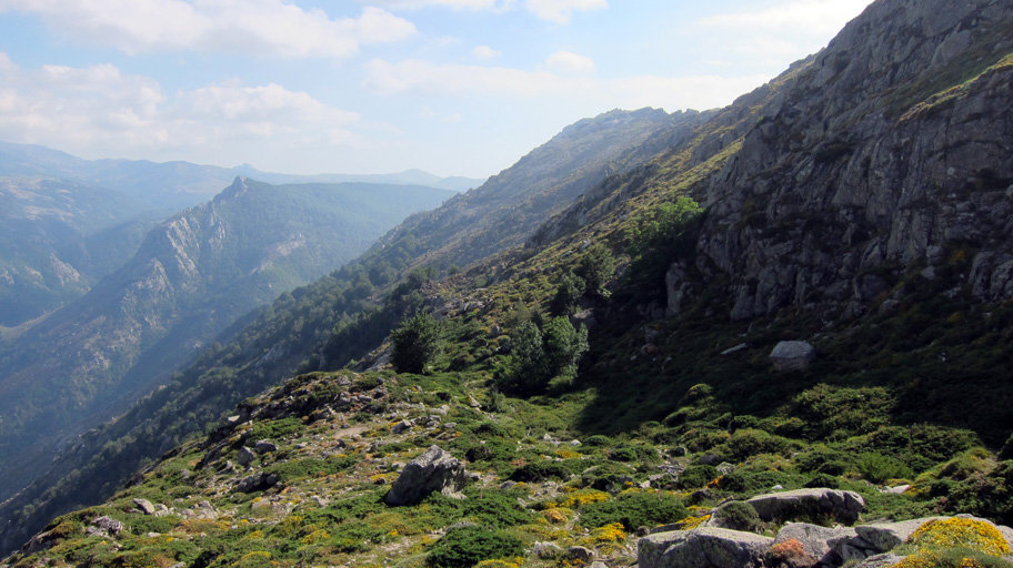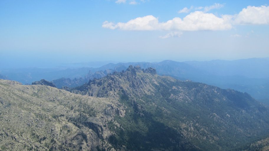 Nachdem ich ein Tal mit einen Bach gequert hatte ging es in einen langen 3 stündigen Aufstieg auf den Monte Incudine (2134 m). Von diesem Berg konnte ich fast bis zur Südspitze von Korsika sehen.