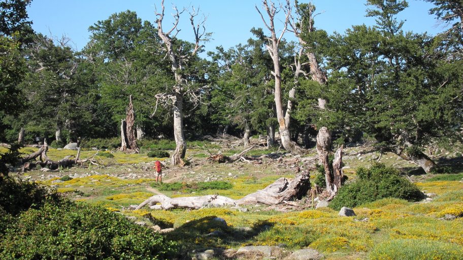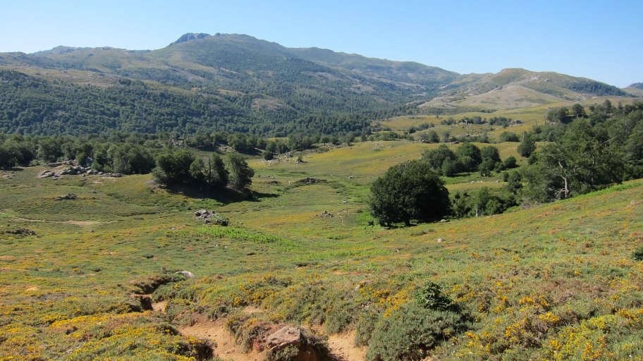 Kurz vor 10 Uhr erreichte ich diese Ebene. Ganz hinten am Horizont ist der letzte 2000-er der Tour zu erkennen, der Monte Incudine. Es war wieder sehr heiß an diesem Tag besonders auf dieser Hochebene (ca. 1500 m hoch).