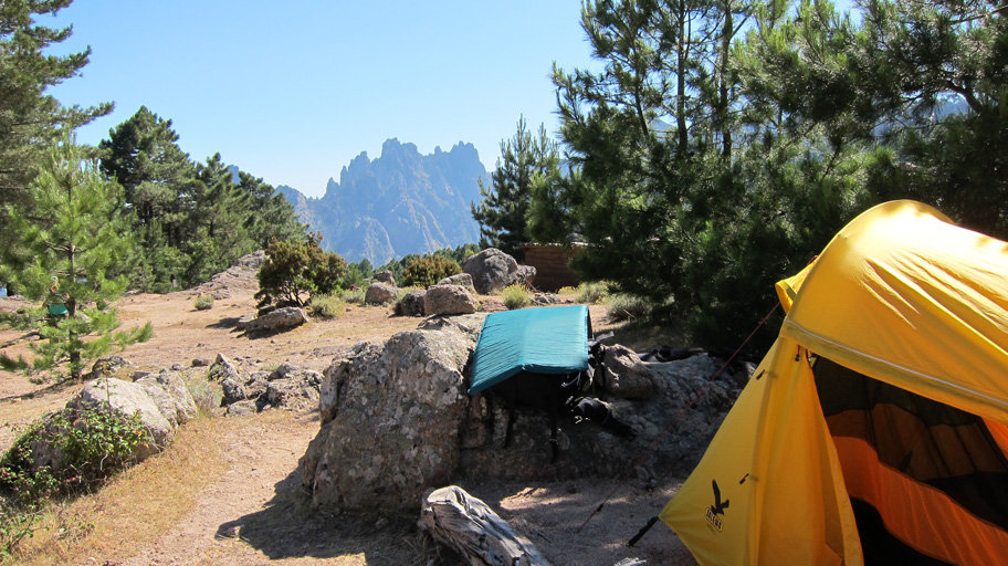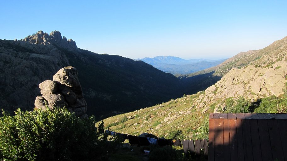 Früh am Morgen sieht man von der Refuge d'Asinau die Bavella liegen. Dies ist das nächste Zwischenziel. Über die Bavella verläuft die kürzere und interessantere alpine Variante des GR20.