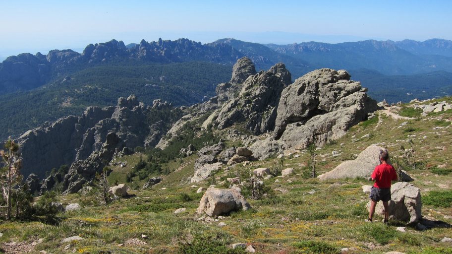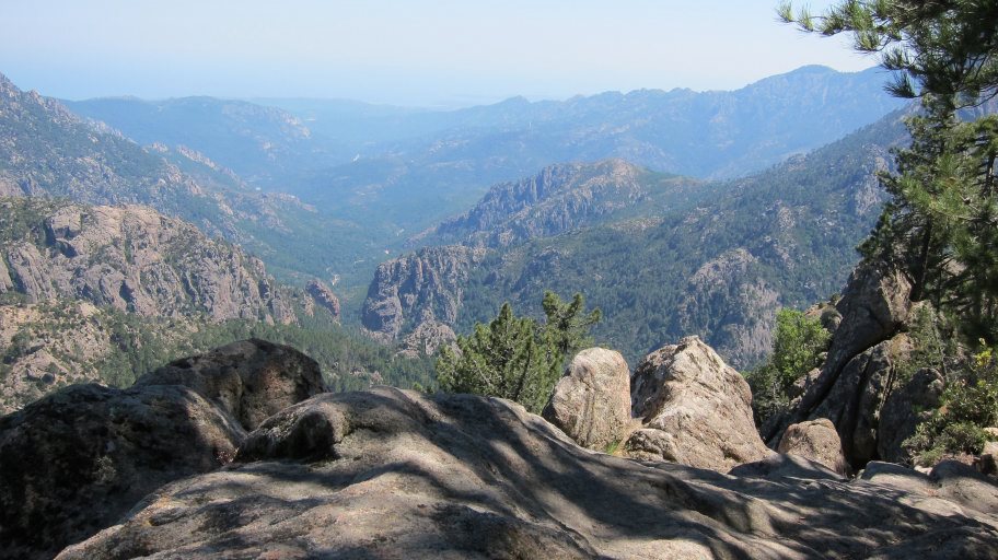 Vom Plateau an der Refuge de Paliri hat man einen herrlichen Blick Richtung Süden. Im Hintergrund ist bereits das Meer, das Ziel des GR20, zu erkennen.