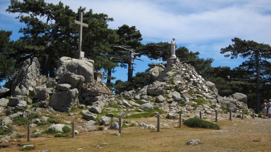 Am Col de Bavella 1218 m war ich bereits ein Jahr zuvor, allerdings per PKW. Von hier aus geht es einige hundert Meter die Straße Richtung Osten entlang. Das hier viele Touristen vorbei kommen hatte für mich den Vorteil, dass es auch eine Pizzeria gab und ich mal zu einem richtigen Mittagessen gekommen bin.