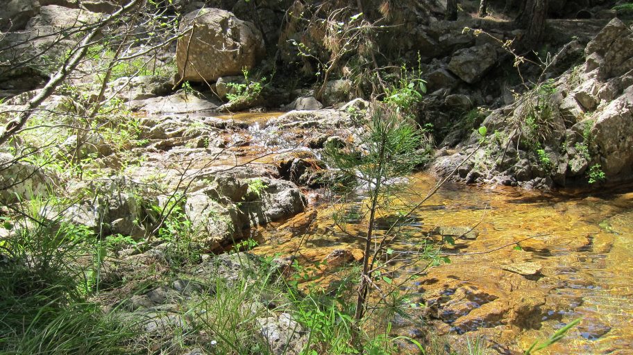 Danach ging es vom Col de Bavella hauptsächlich durch Wald. In diesem Wasser nahm ich noch eine Erfrischung bevor es hoch zum Foce Finosa (1206 m) ging. Ab dort sollte es laut Rother in 30 min bis zur Refuge de Palari (1055 m) gehen. Diese Angabe ist sehr optimistisch. Dieser Weg war am Wegweiser mit 50 min angegeben und ich braucht ca. 45 min.