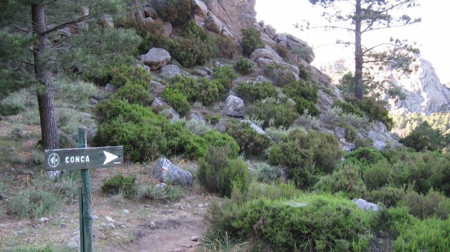 Dieser Wegweise zeigt die Richtung CONCA, dem letzten Etappenziel des GR20.