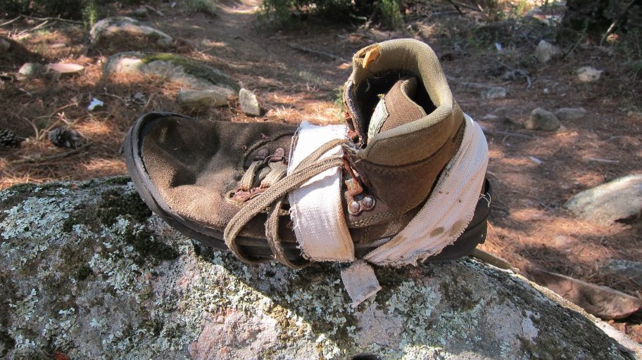 Diesen Schuh fand ich am Wegesrand. Wie mag wohl der Wanderer dieses Schuhes nach Hause gekommen sein?