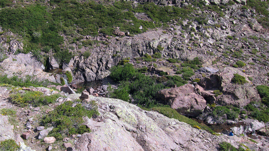 Da es erst 12 Uhr war, machte eine kurzen Rast auf dieser herrlichen Terrasse und beschloss anschließend noch weiter bis zum Castel de Vergio zu gehen. Auch freute ich mich noch auf die eine oder andere Badegumpe des Mori-Bachs unten im Tal.