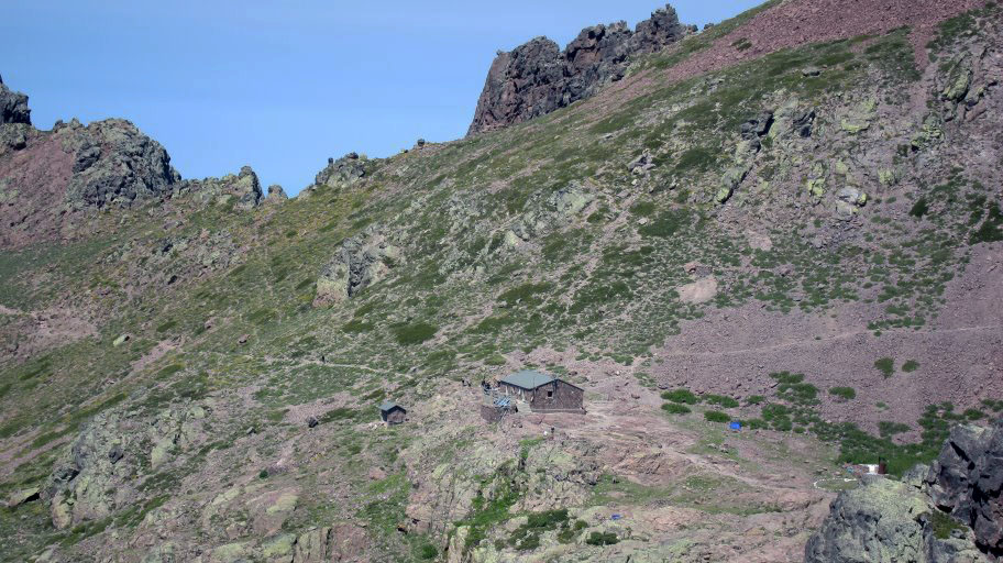 Hier ist bereits die Refuge Mori (1991 m) zu sehen. Sie ist höchst gelegene Hütte auf dem GR20.