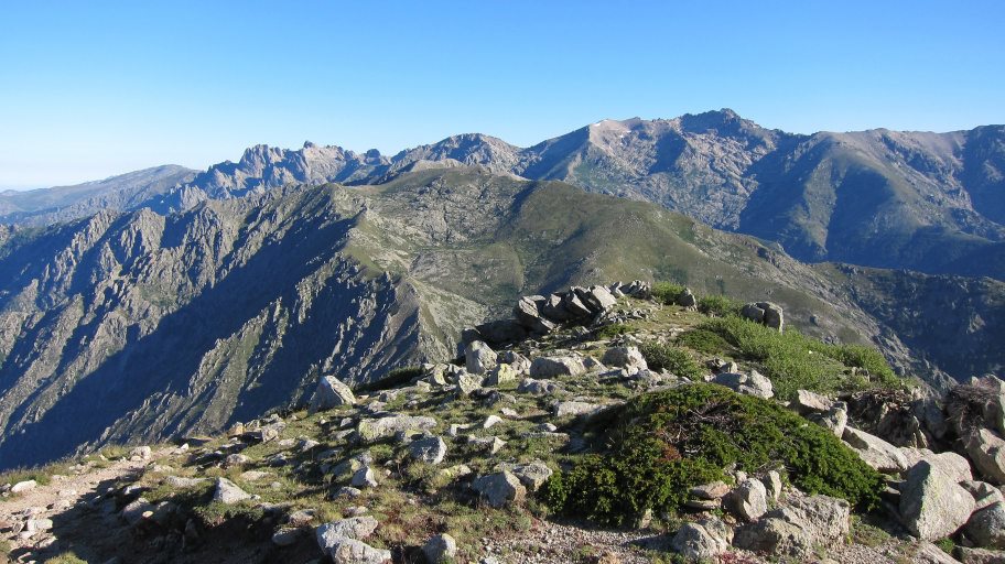 Danach ging es über über 2 Stunden beran mit einer tollen Sicht Richtung Süden, meinem weiteren Weg. Der höchste Punkt war der Crete de Muratello mit 2064 m, den ich kurz nach 9 Uhr erreichte.