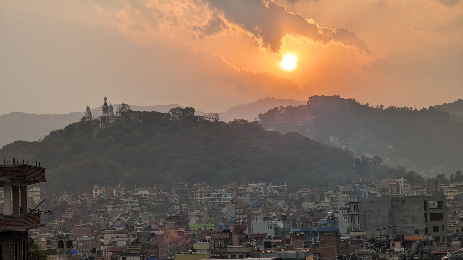Blick von unserem Hotel "Kathmandu View Hotel" Richtung Affentempel