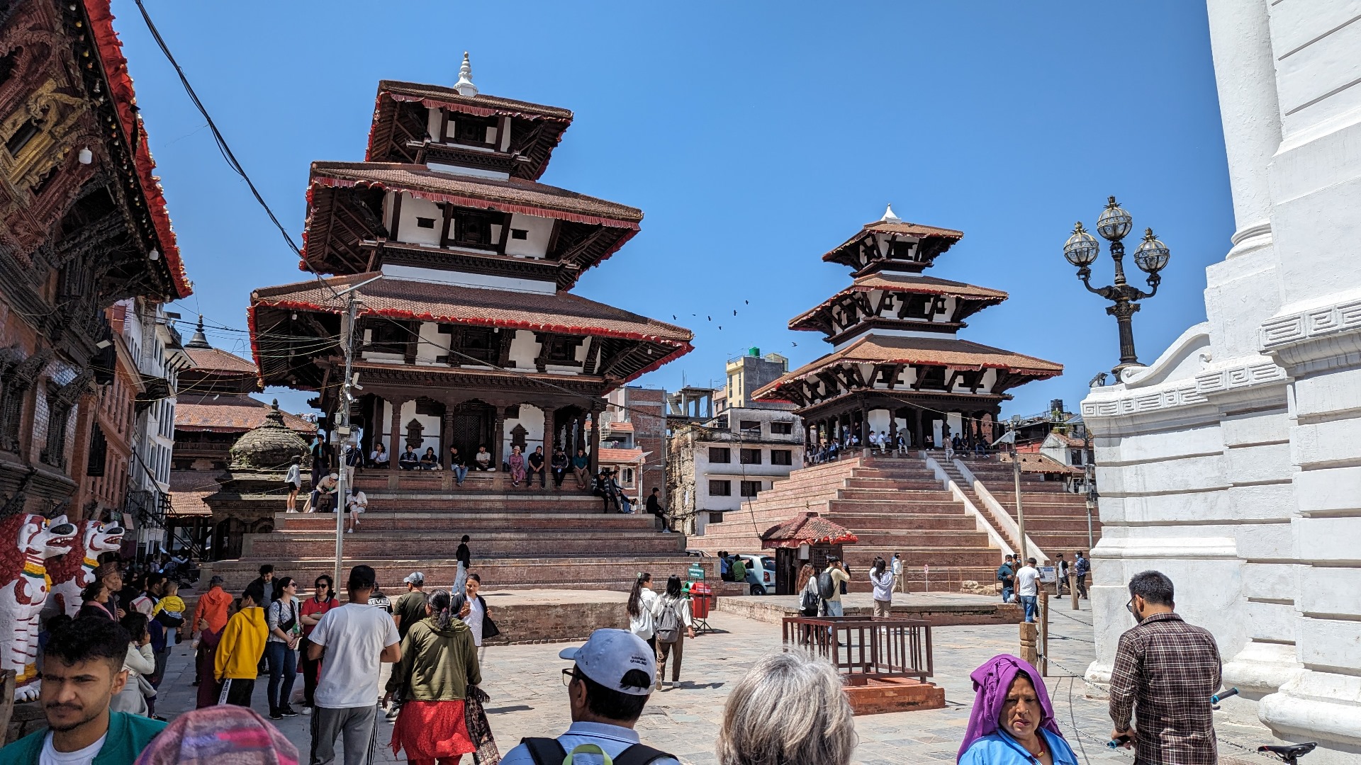 Durbar Square: Diese 2 Tempel wurden nach dem Erdbeben wieder komplett neu aufgebaut.