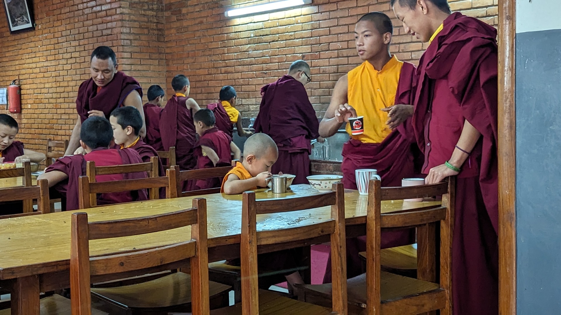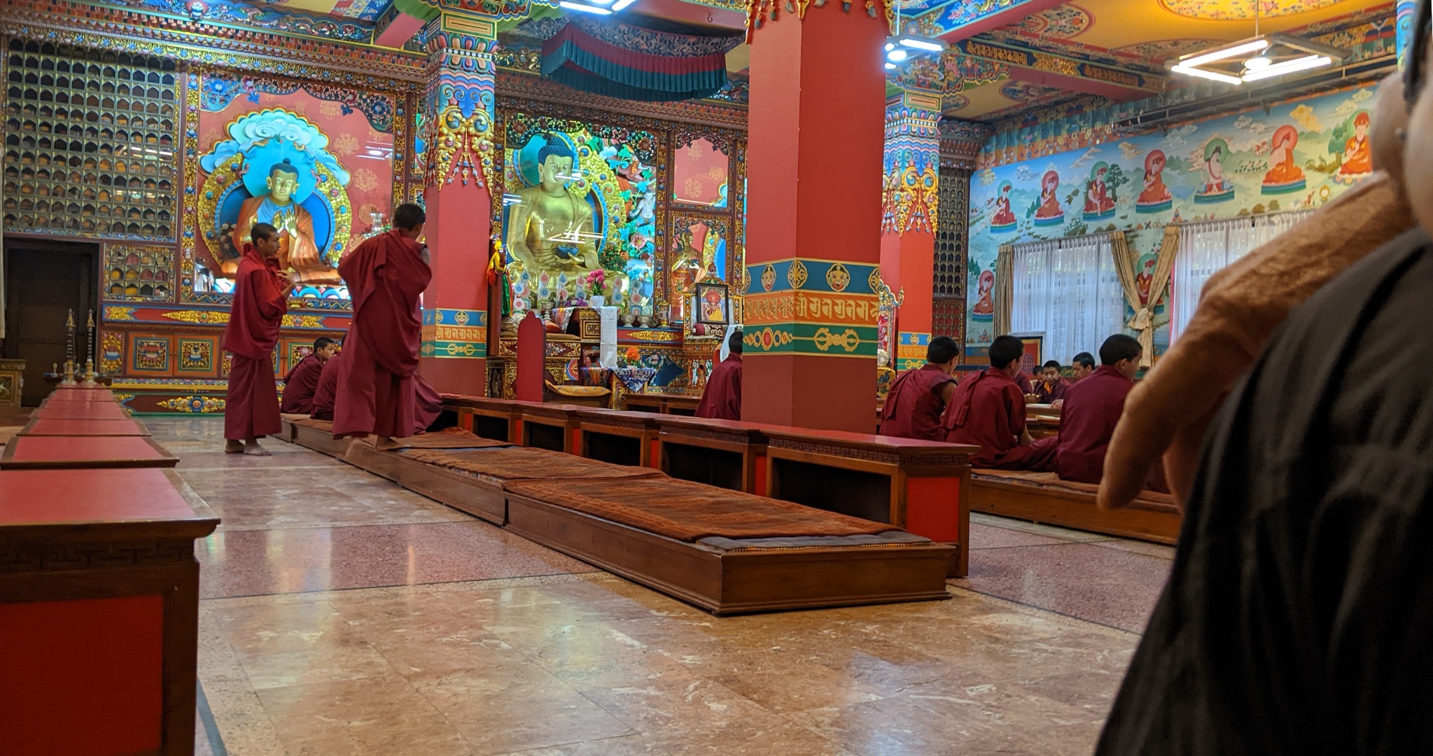 Die morgentliche Puja findet im Kloster für die älteren Mönchsschüler immer von 6:00 bis 7:00 Uhr vor dem Frühstück statt und wir durften dabei sein.