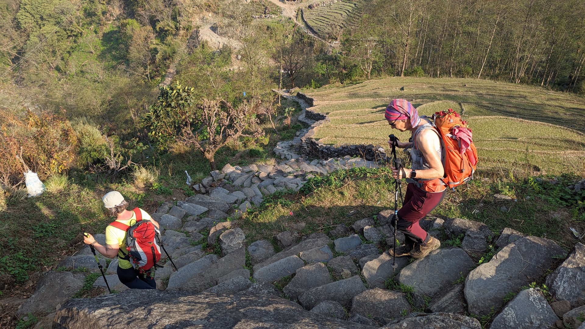 Heute ging es weit nach unten und dann wieder nach oben über endlose hohe Steinstufen. Insgesamt kamen geschätzt 1000 Höhenmeter zusammen.
