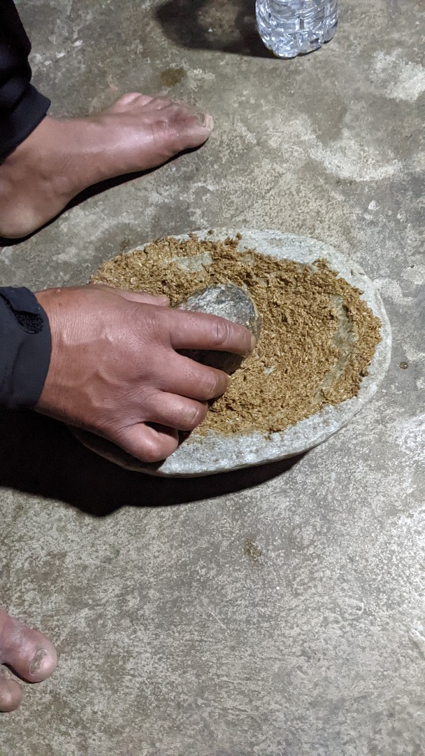 Die Gewürzpaste wird mit einem Stein als Mörser zubereitet und ist die wichtigste Zutat für ein geschmackvolles Dal Bhat.