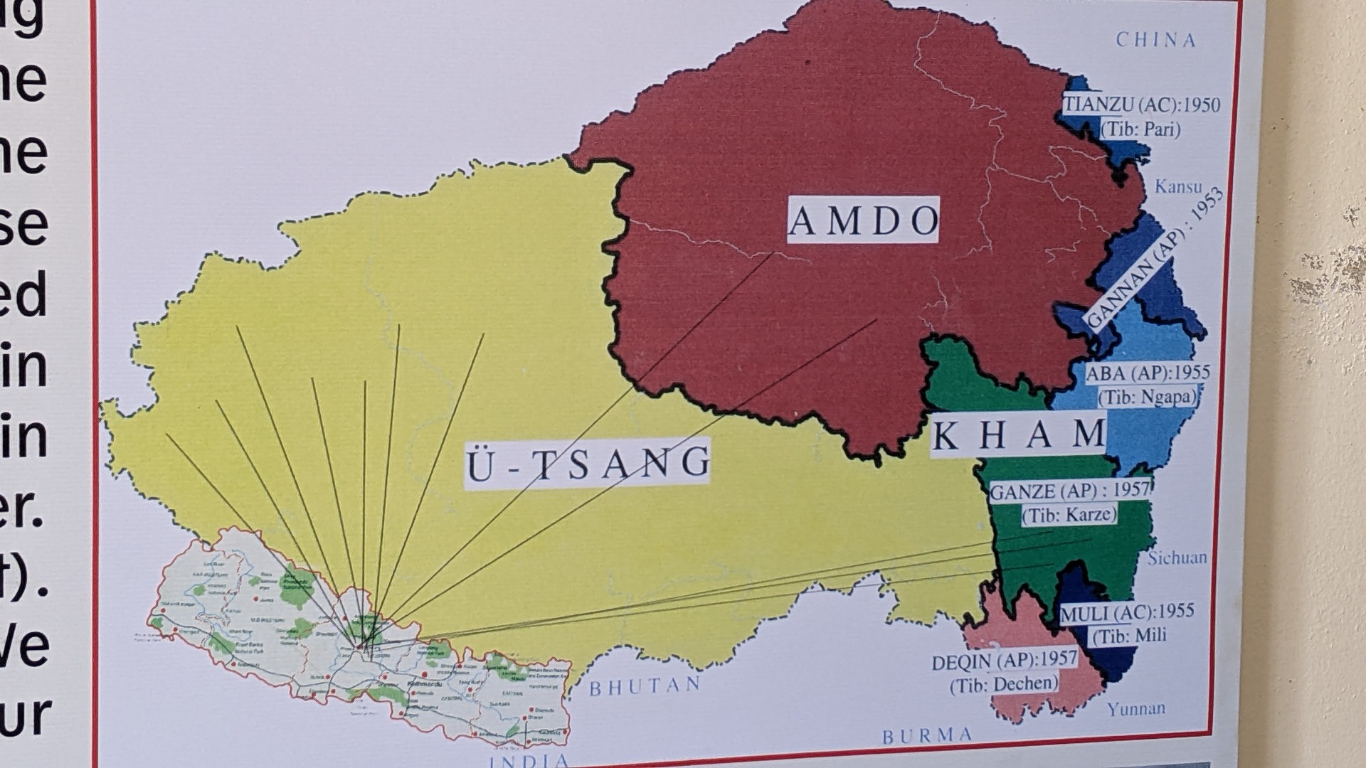 Im Museum der ersten Siedlung zeigt diese Karte die 3 Regionen Tibets und deren schrittweisen Annektierung durch China. Nur insgesamt 2 Millionen Tibeter leben im Exil in verschiedenen Ländern der Welt, der Rest noch in Tibet unter chinesischer Herrschaft. In den tibetischen Schulen lernen die Kinder von Anfang an 3 Sprachen: Tibetisch, Englisch und die jeweilige Landessprache.