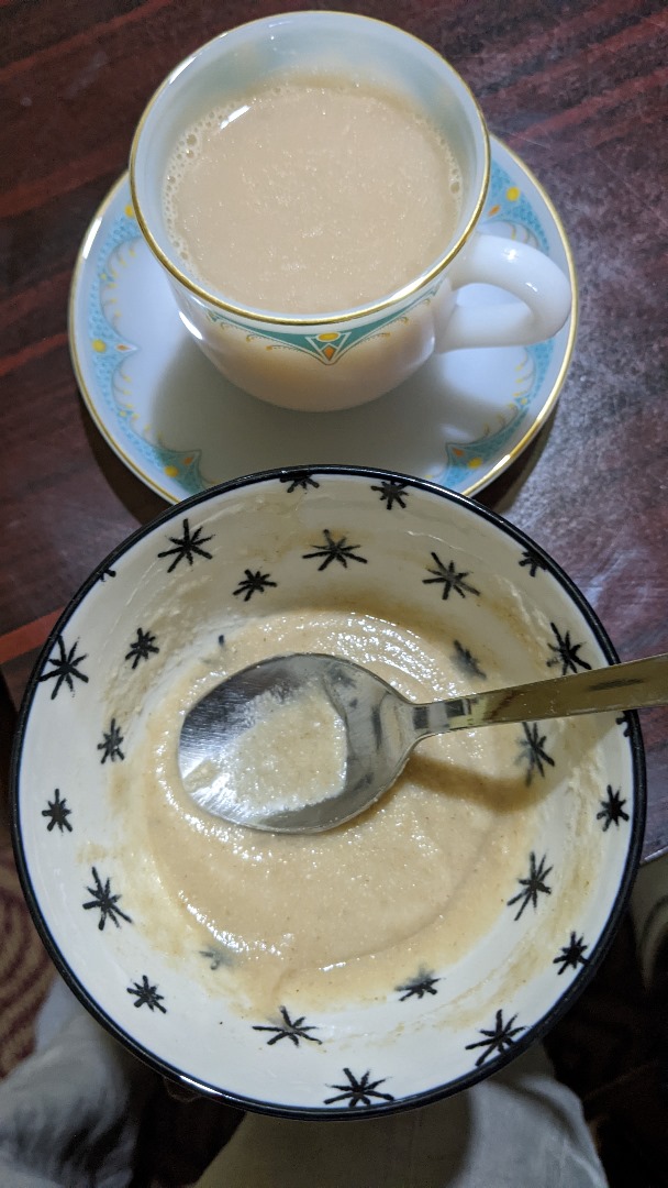Bei einer tibetischen Familie bekamen wir ein traditionelles Essen mit Buttertee und Tsampa sowie tibetisches Fladenbrot. Es schmeckte besser als gedacht.