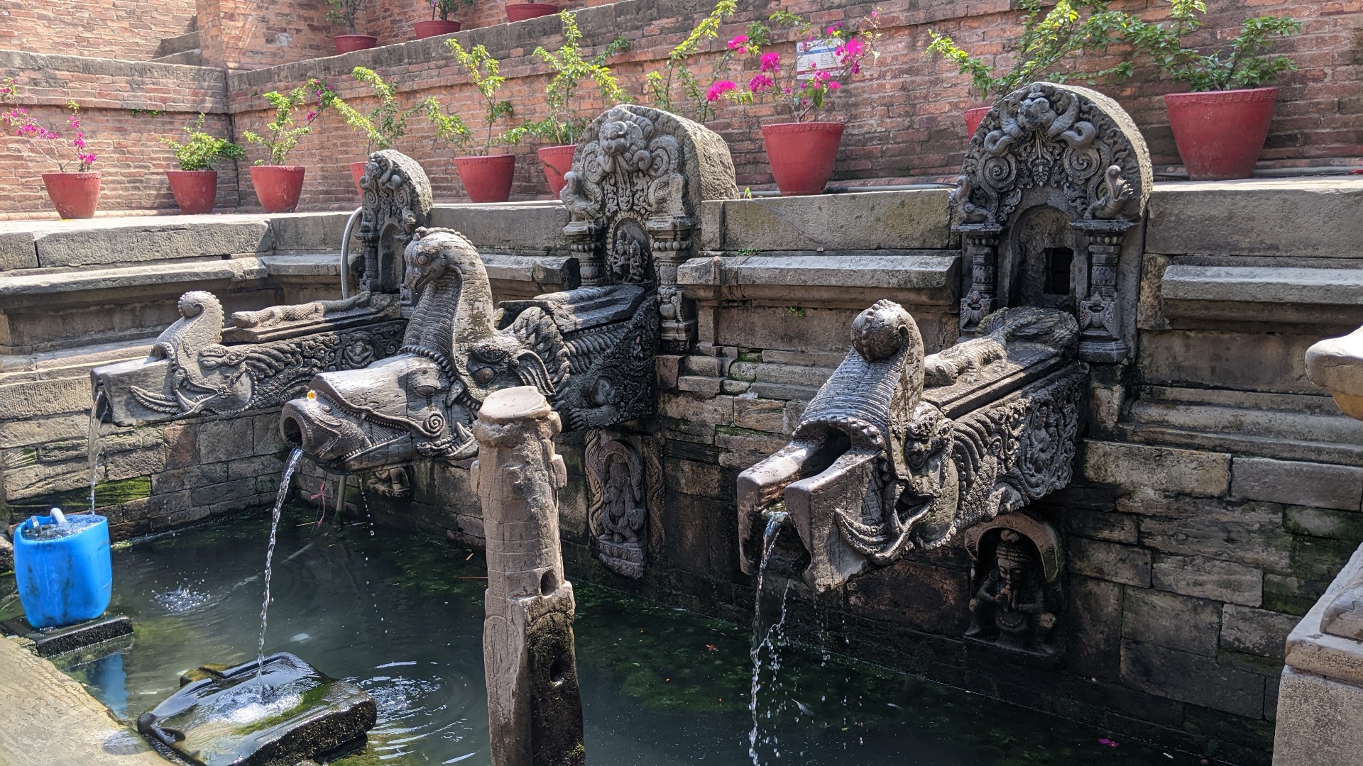Die Quellen in Patan sollen direkt unterirdisch durch die Gosaikund-Seen gespeist werden. Da die Einheimischen hier ihr Wasser holten füllten auch wir unsere Wasserflaschen hier auf. Das Wasser schmeckte sehr gut.