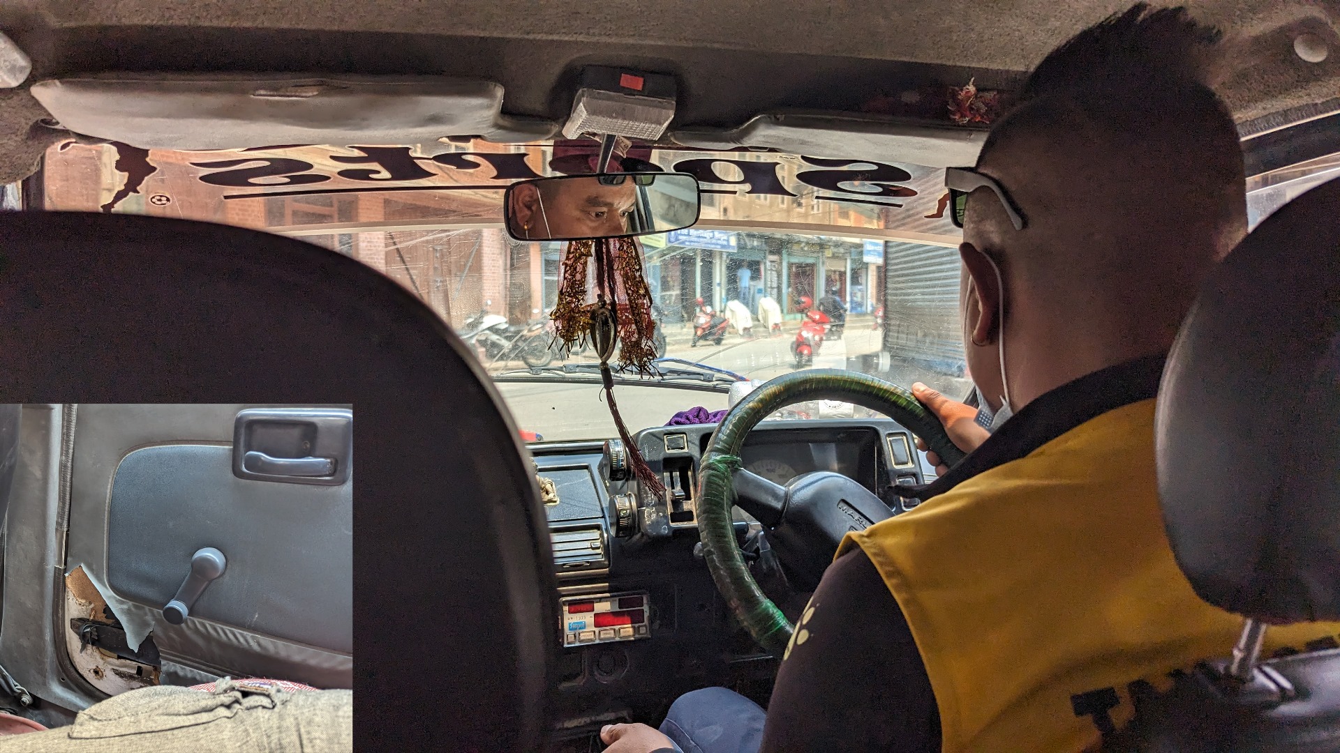 Mit diesem alten Taxi fuhren wir dann von Patan nach Kathmandu zurück. Links im Bild habe ich mal ein Teil der Tür kopiert.