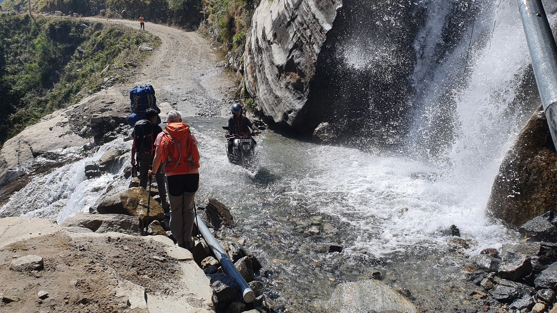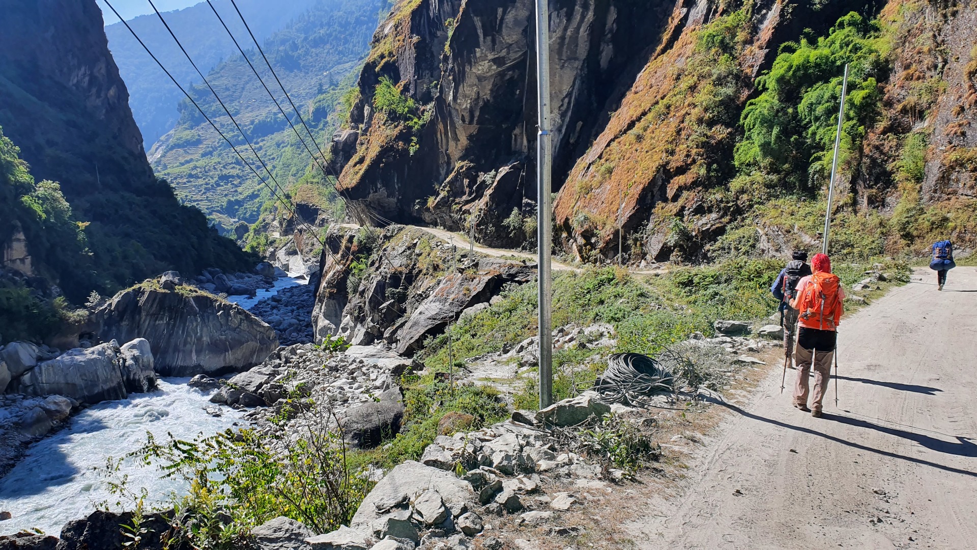 Normalerweise hätten wir direkt von Thonche über die nicht mehr vorhanden Hängebrücke nach Daraphani laufen können. Diese wurde leider beim Hochwasser 2021 zerstört, so dass wir einen größeren Umweg zu nächsten Autobrücke laufen mussten. Einige Trekker erweitern ihre Tour noch von Daraphani nach Jomson auf der Annapurna - Runde über den Thorong La Pass.