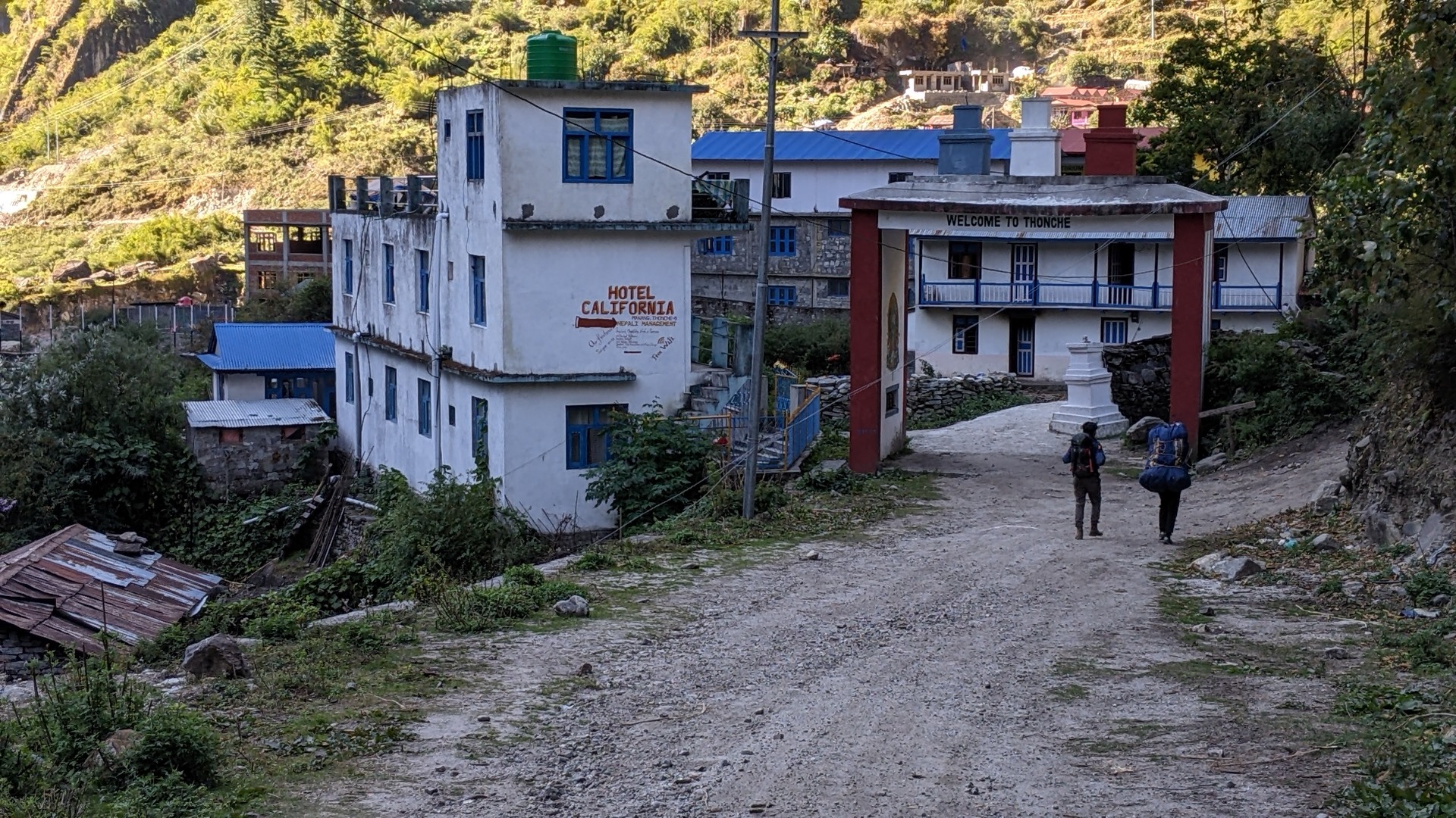 Ein hochtrabender Name für diese Lodge "Hotel California" in Thonche. Diese lag direkt gegenüber von Daraphani.