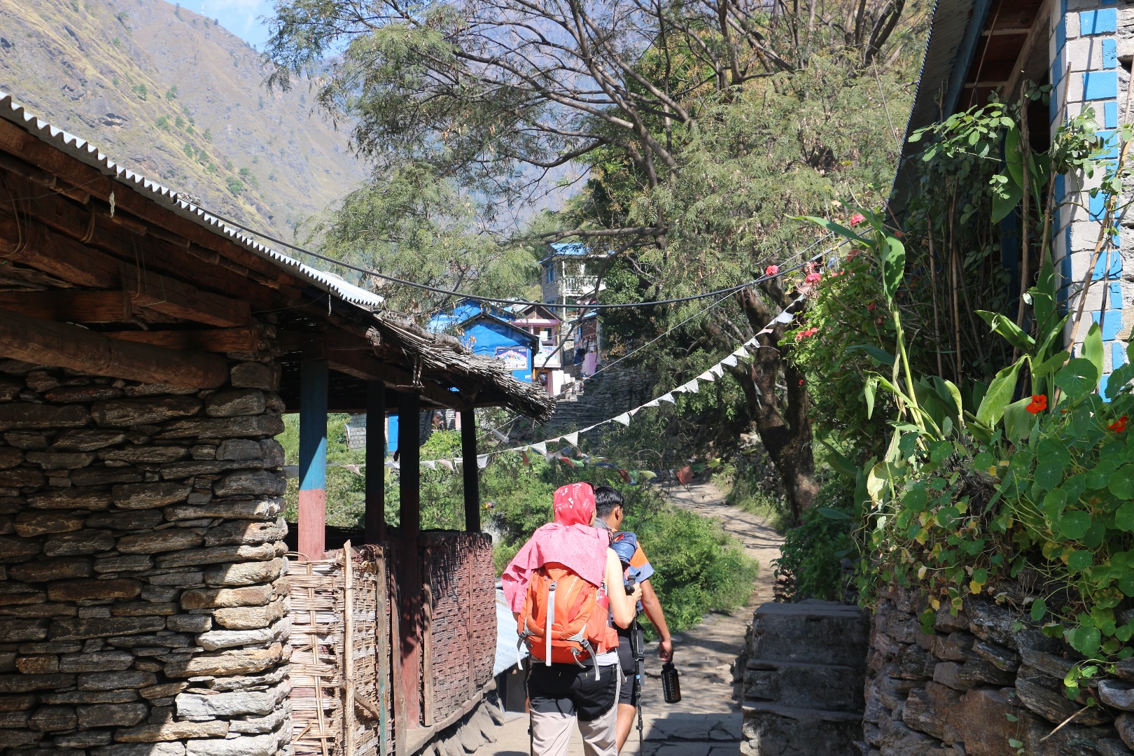 Mittagspause im Gurungdorf Philim. Hier gab es einen Checkpoint, wo die Permits kontrolliert wurden. Die Manaslu-Runde im gleichnamigen Nationalpark darf nur mit einem für diese Runde zertifizierten Guide gegangen werden.