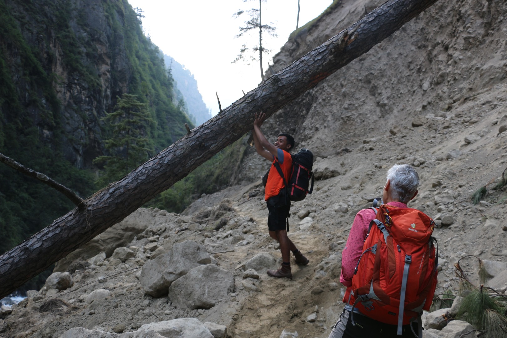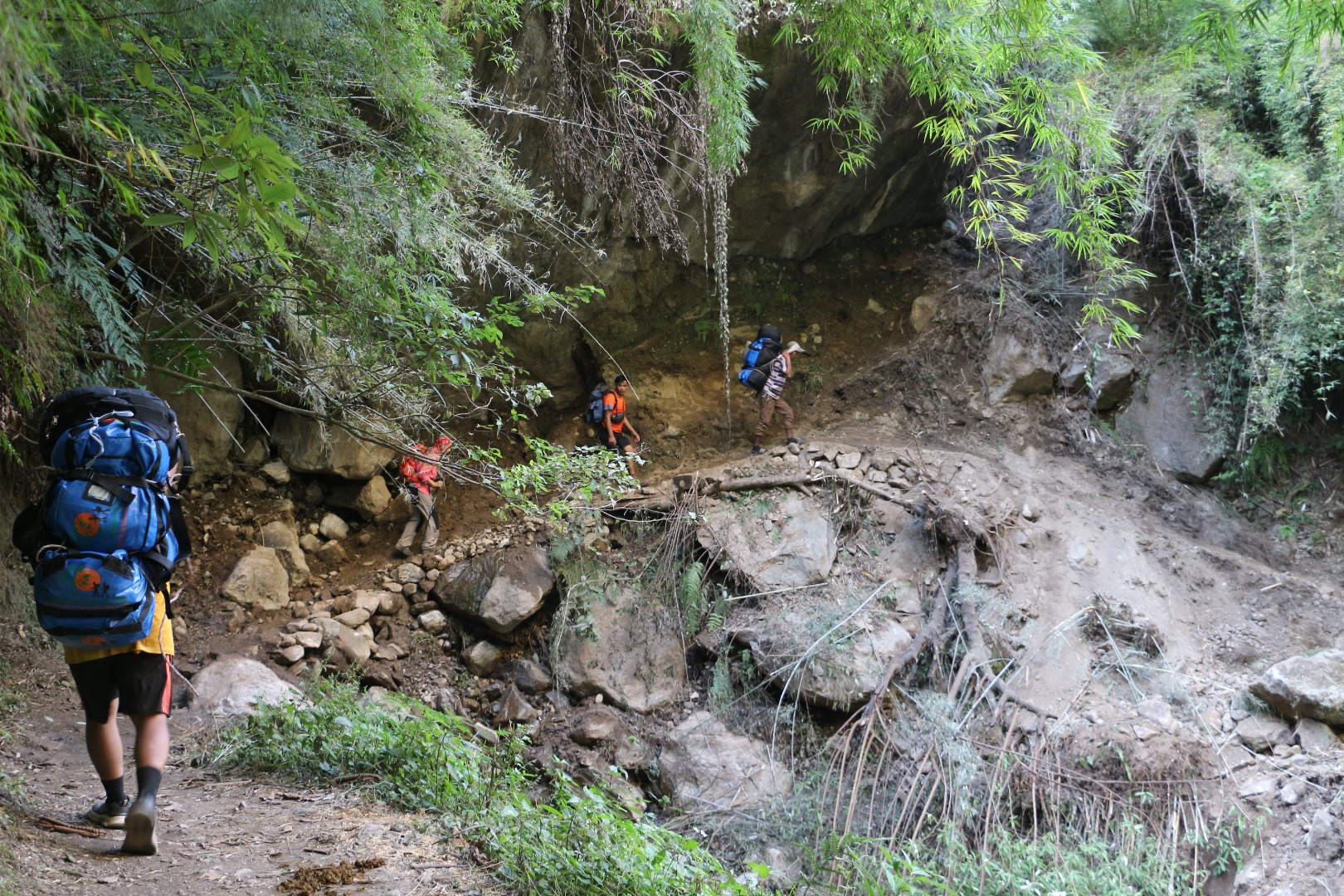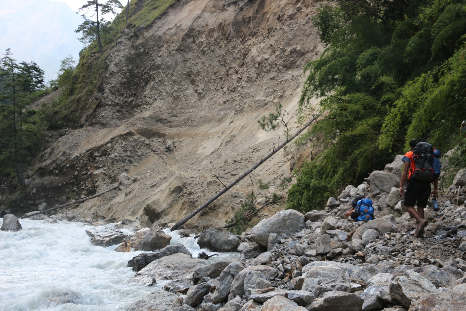 Die Urkräfte der Natur sind hier deutlich zu sehen. Hier gab es mal einen bequemeren Weg. Der Fluss führte auf Grund der heftigen Regenfälle sehr viel Wasser.