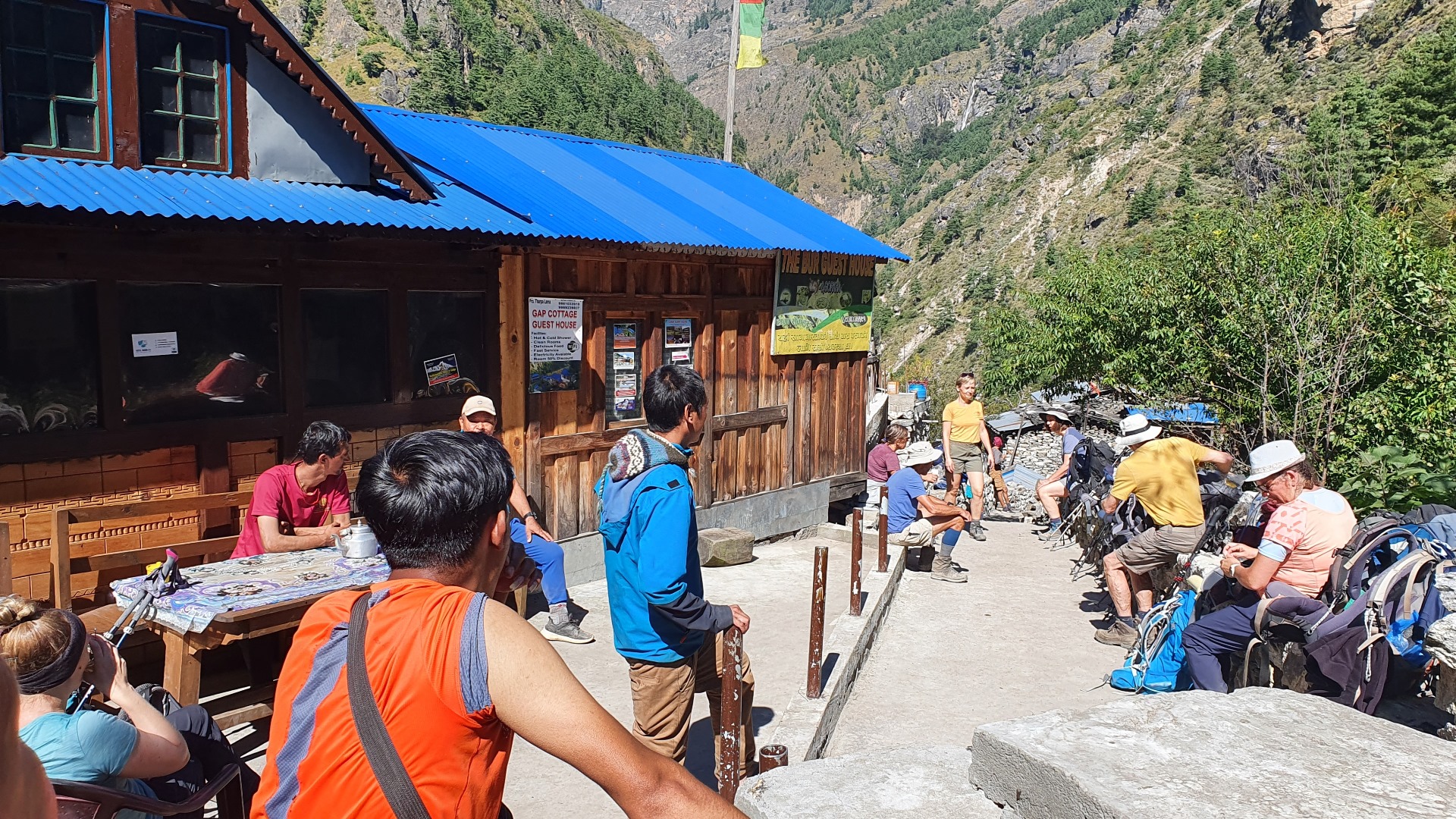 Es waren auch viele andere kleine Gruppen unterwegs, hier bei einer Trinkrast. Unterwegs verlief sich das aber wieder. Bestimmte Wanderer trafen wir immer mal wieder.