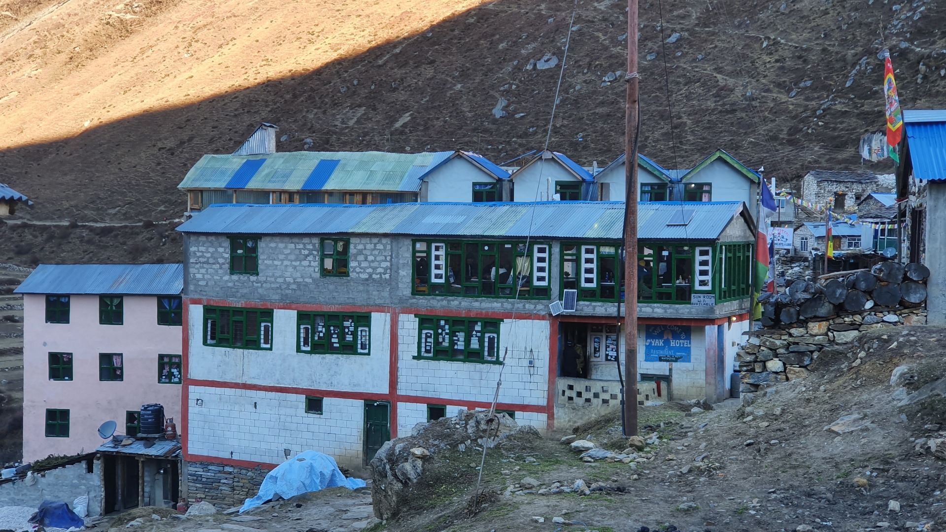 Unsere Lodge in Samdo, im Vordergrund befindet sich nur die Küche und der Essensraum, im Gebäude dahinter sind die Zimmer zu sehen.