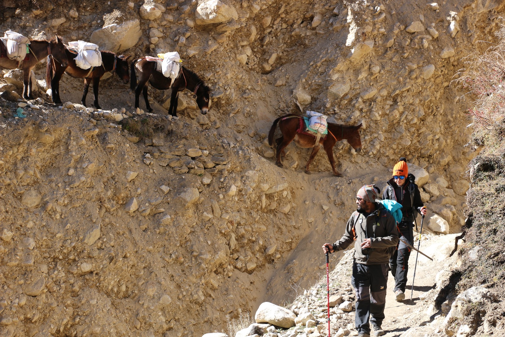 Die Mulis (Maultiere) schaffen es sogar mit Gepäck.
