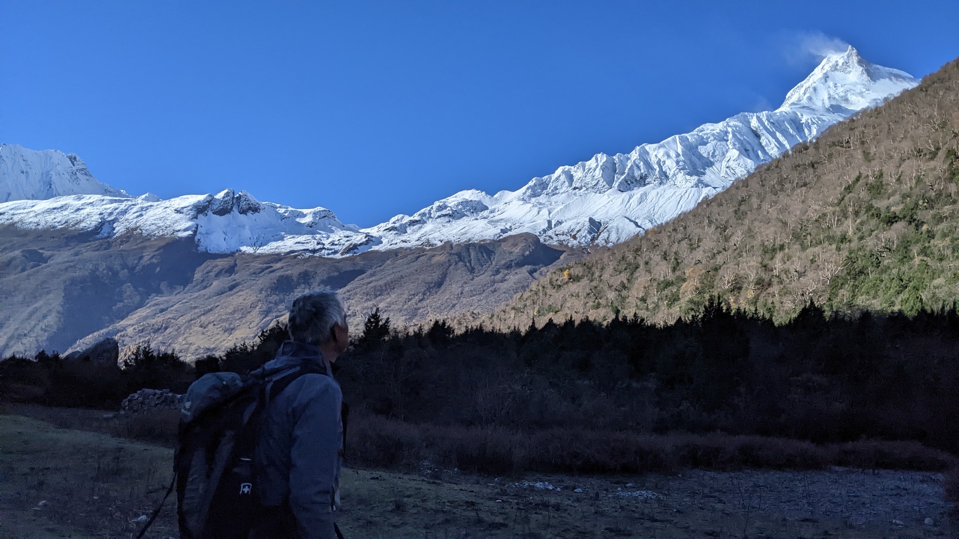 Morgens im Schatten ist es im Tal in diesen Höhen immer frostig. Sobald die Sonne kommt wird es dann warm.