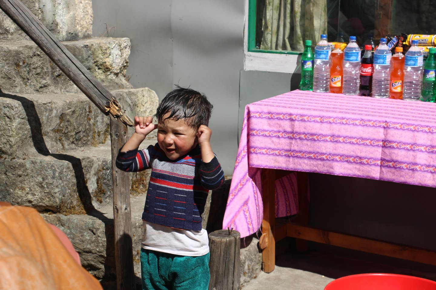 Es ist wieder wärmer geworden. Überall am Wegesrand gab es kleinere "Läden". Das Familienleben spielt sich hauptsächlich auf der Straße ab. Diesem Jungen wurden gerade die Haare gewaschen, natürlich mit kaltem Wasser.