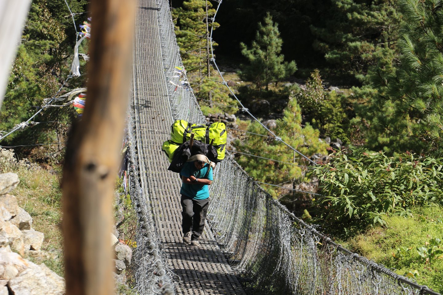 Wieder eine der vielen Hängebrücken. Unser Träger tat uns manchmal leid.