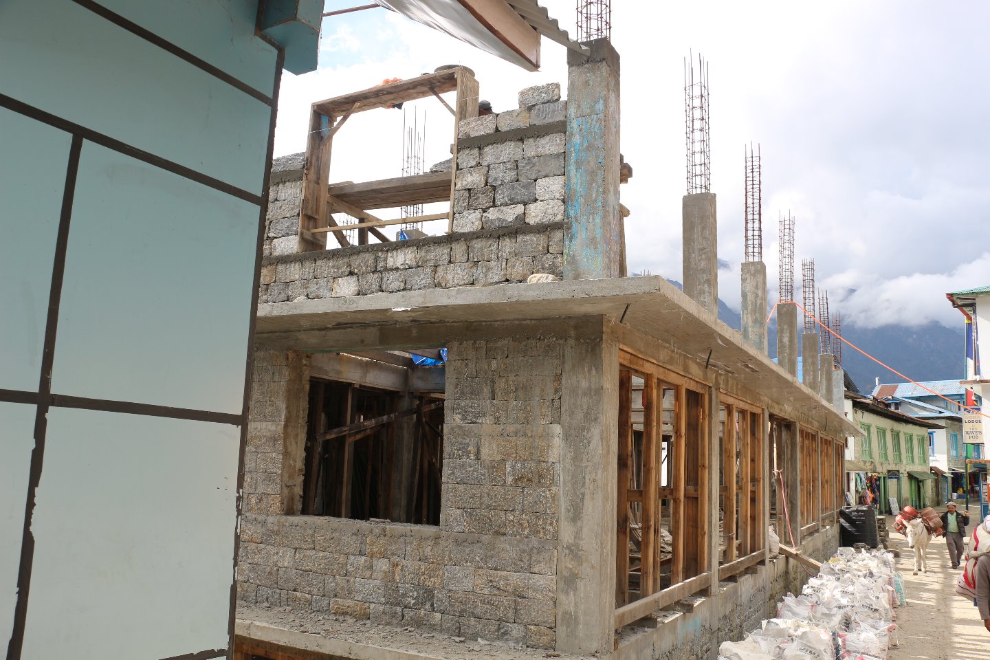 Wieder zurück in Lukla. Auch hier werden alle Lücken zugebaut. Die Säcke mit Baumaterial sind alle von Lasttieren hierher transportiert worden. Das Bauen ist hier eben aufwendiger.