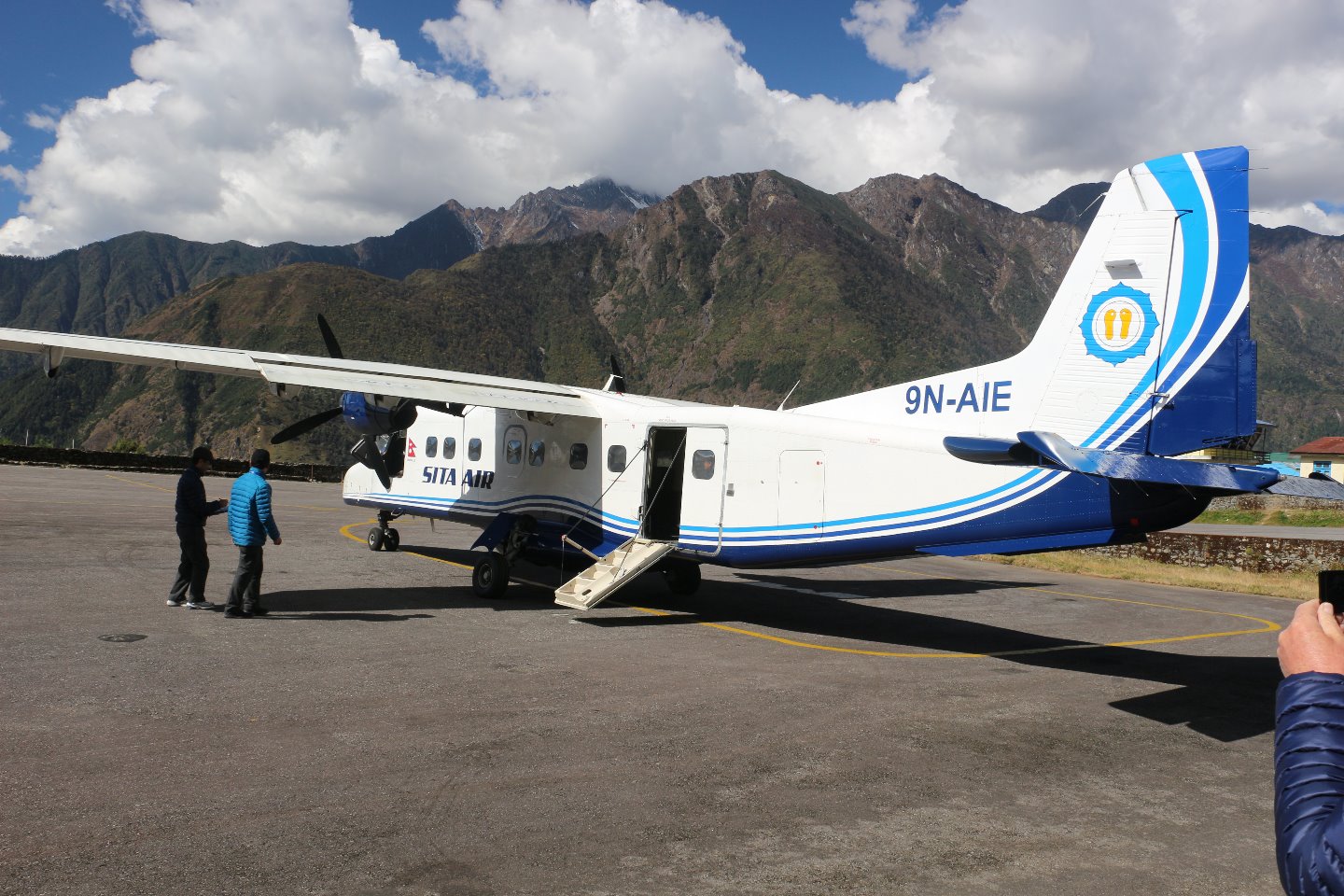 Wir mussten noch 20 Minuten auf das Einsteigen warten, da die Piloten erst einmal eine Pause machten. Wir standen direkt am Flugzeug. Dies wäre bei uns nicht möglich. In Kathmandu erwartete uns dann wieder warmes Wetter mit über 25 °C aber auch viel Staub, Lärm und Verkehrschaos. Der blanke Gegensatz zu dieser Trekking-Tour.