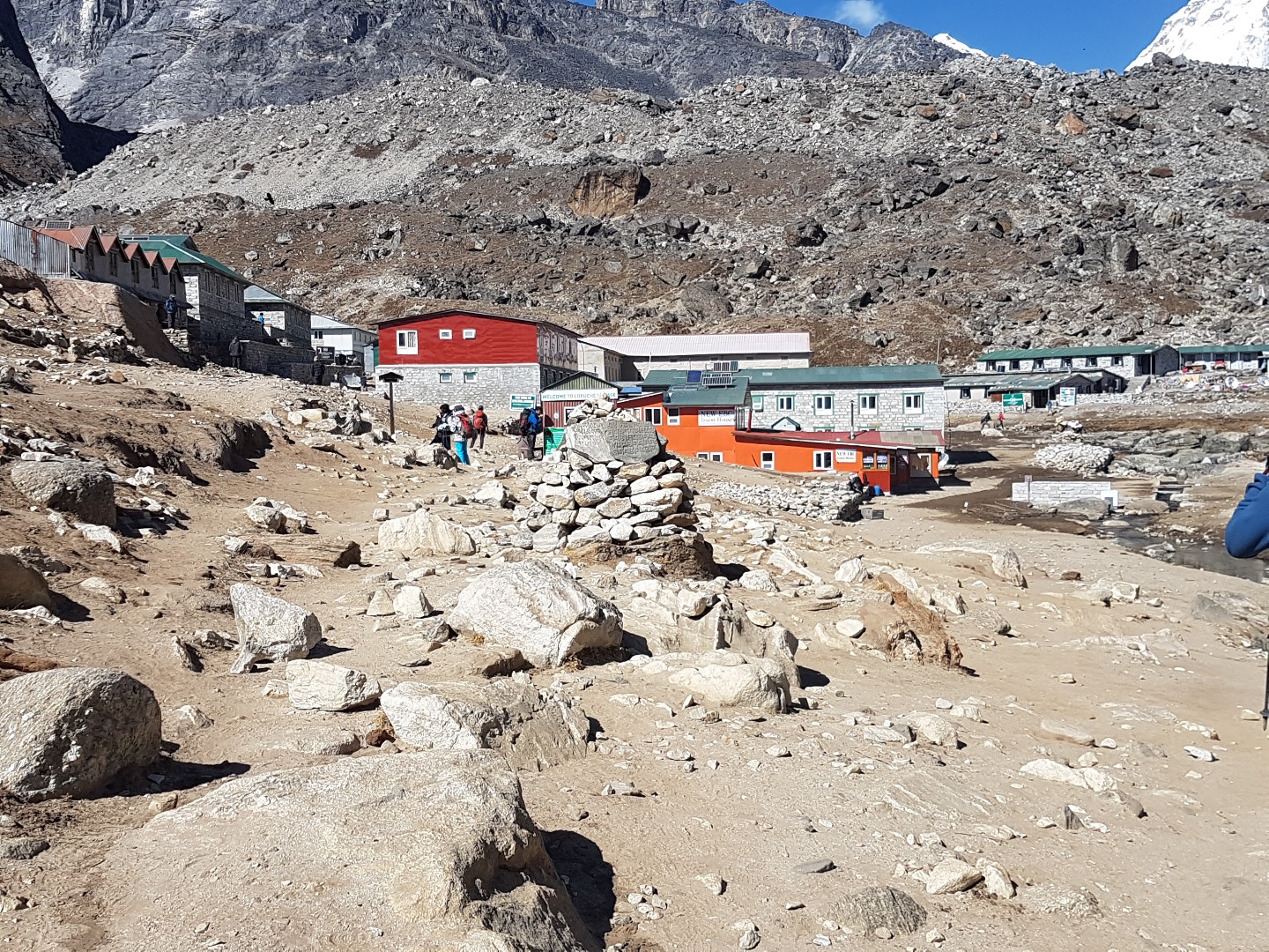 Viele sind hier noch am Nachmittag auf Akklimatisierungstour unterwegs. Die Aussicht auf den Khumbu Gletscher ist auf jedenfalls lohneswert.