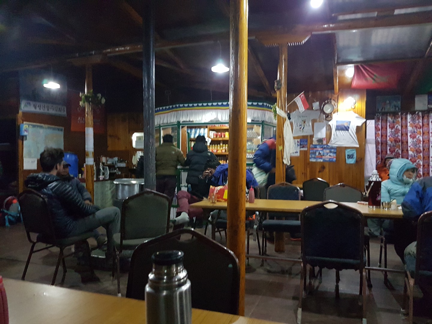 Abends in der Lodge sind die Plätze am einzigen Ofen immer sehr begehrt. Die Öfen werden auch zum Erzeugen von heißem Wasser genutzt. Dieses kann dann als heißes Wasser oder Tee gekauft werden. Alkohol habe ich in dieser Höhe keinen mehr getrunken.