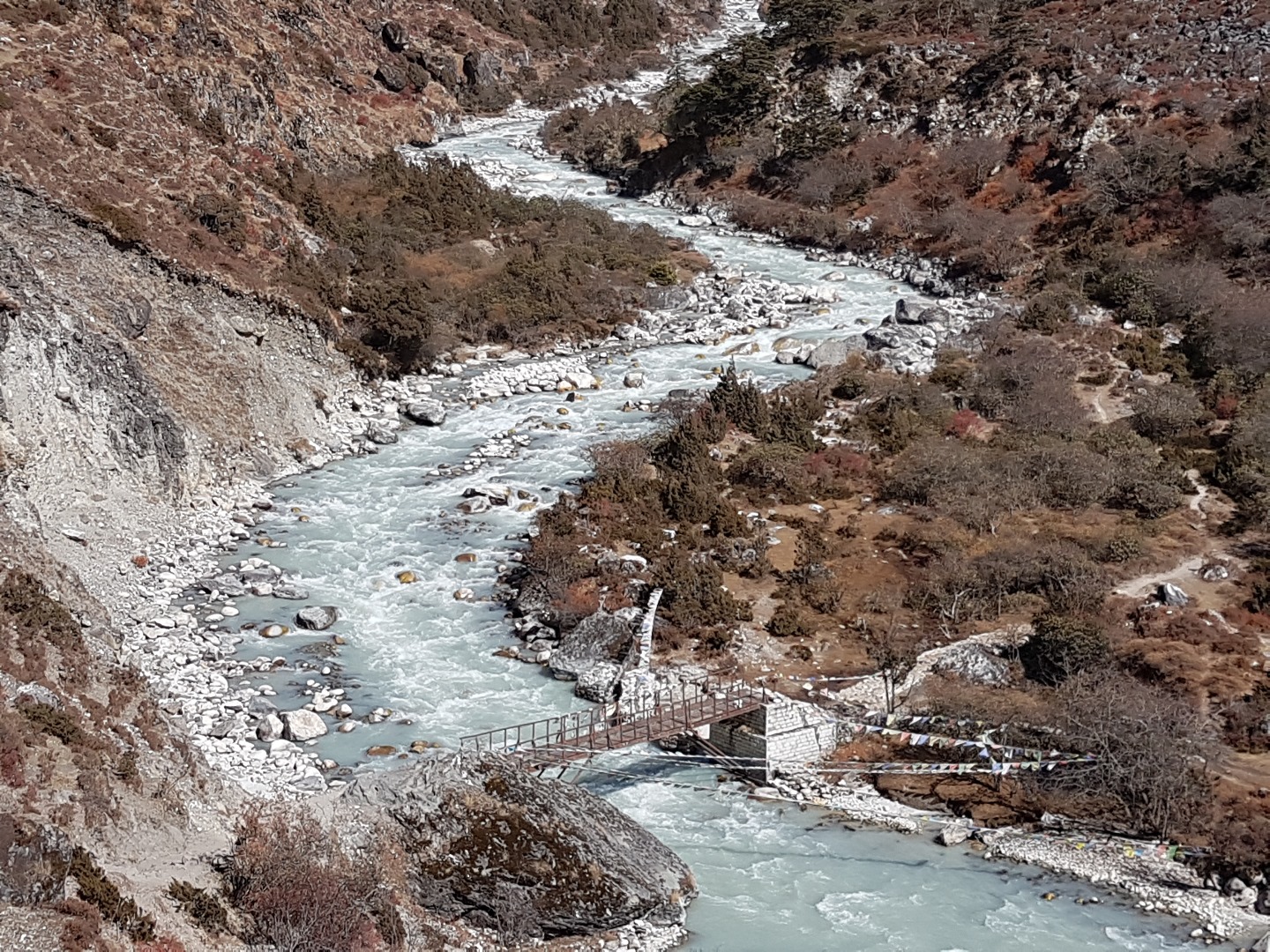 Auf dem Weg zum Ama Dablam Basecamp muss zuerst der Imja Khola überquert werden.