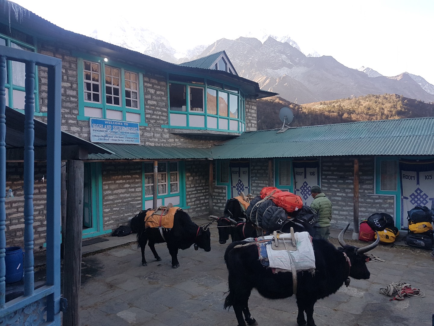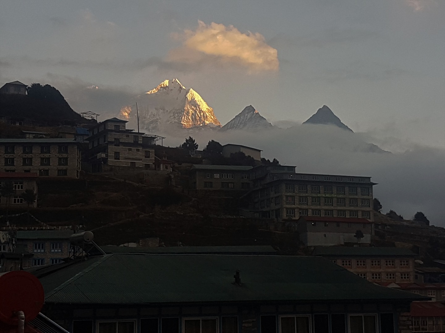In Namche Bazar gibt es sehr viele große Lodges und Hotels. Von dieser Abendstimmung musste ich noch ein Foto machen.