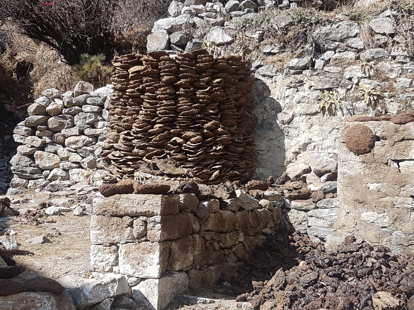 Hier wird Yak-Dunk getrocknet und dann aufgeschichtert. Dies ist ein wichtiger Brennstoff in dieser Gegend, da es kein Holz gibt, bzw. im Nationalpark kein Holz geschlagen werden darf.