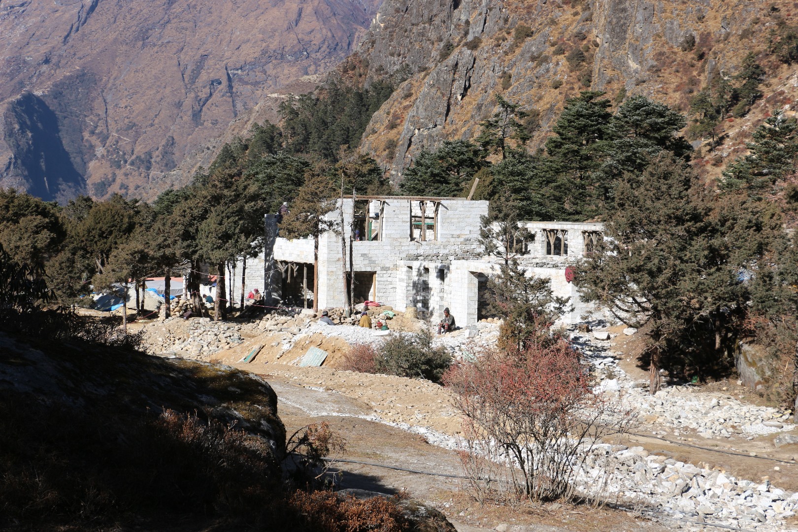 Überall sind Baustellen zu sehen. Hier wird am Standort einer durch das Erdbeben von 2015 zerstörten Lodge eine neue gebaut.