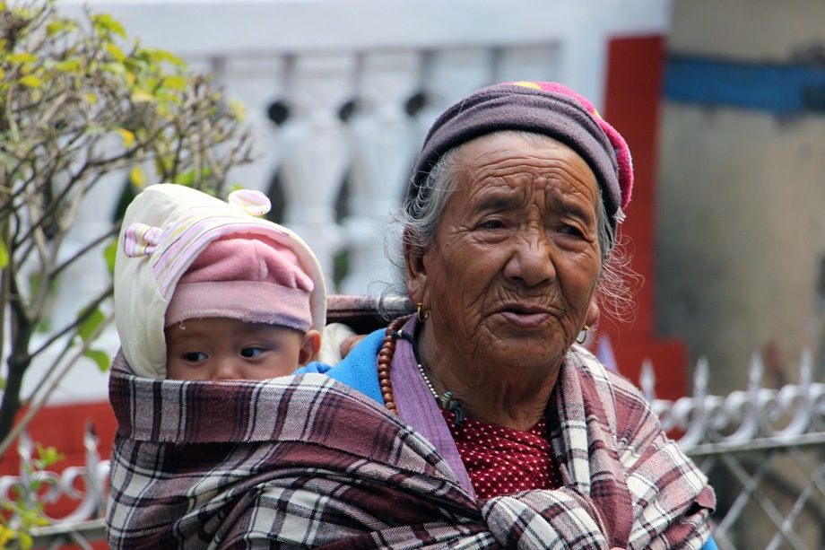 Kinderwagen haben wir in Nepal keine gesehen. Hier werden die Kinder, bzw. Enkel auf dem Rücken getragen.