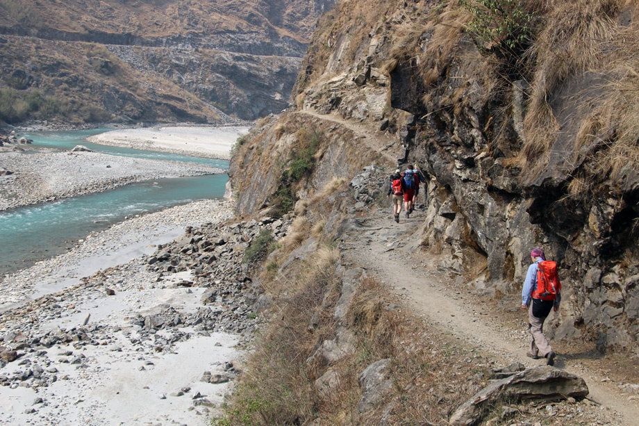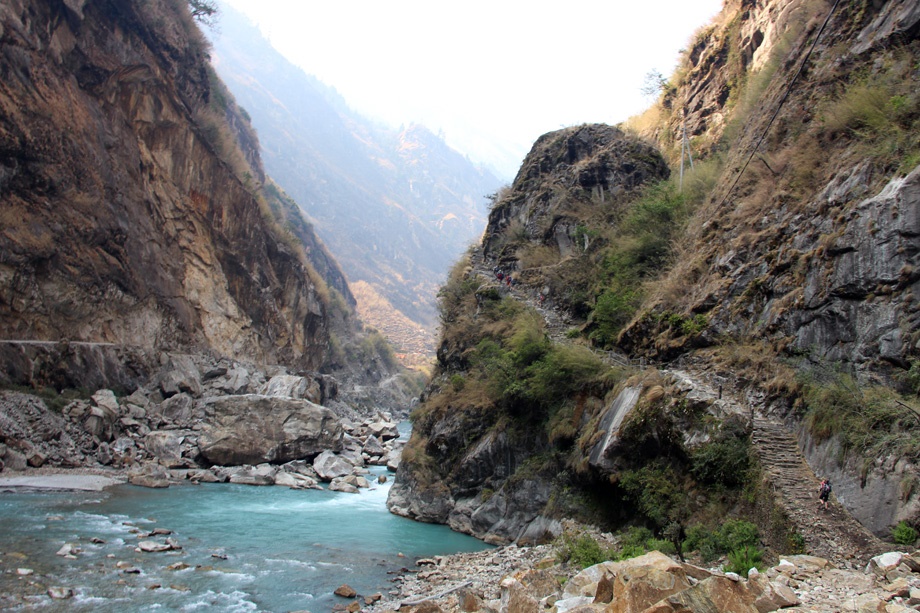 Nachmittags ging es dann gemütlicher bis nach Dharapani (1860 m) weiter. Wir folgten immer dem Marshyangdi Flußtal aufwärts.
