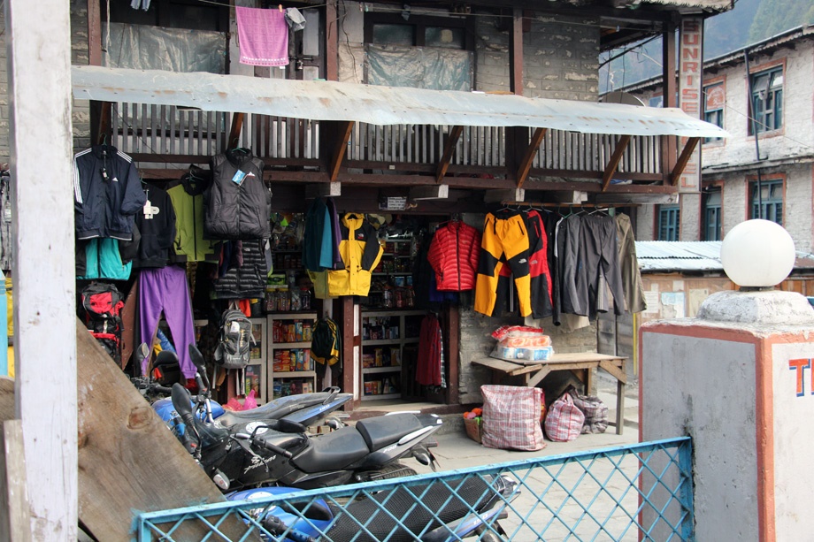 Am Nachmittag erreichten wir in Chame (2670 m) unsere Lodge, wo wir wieder in einer Hütte übernachteten. In Chame gibt es gut ausgestattete Outdoor - Läden, wo jeder noch Fehlendes nachkaufen kann.