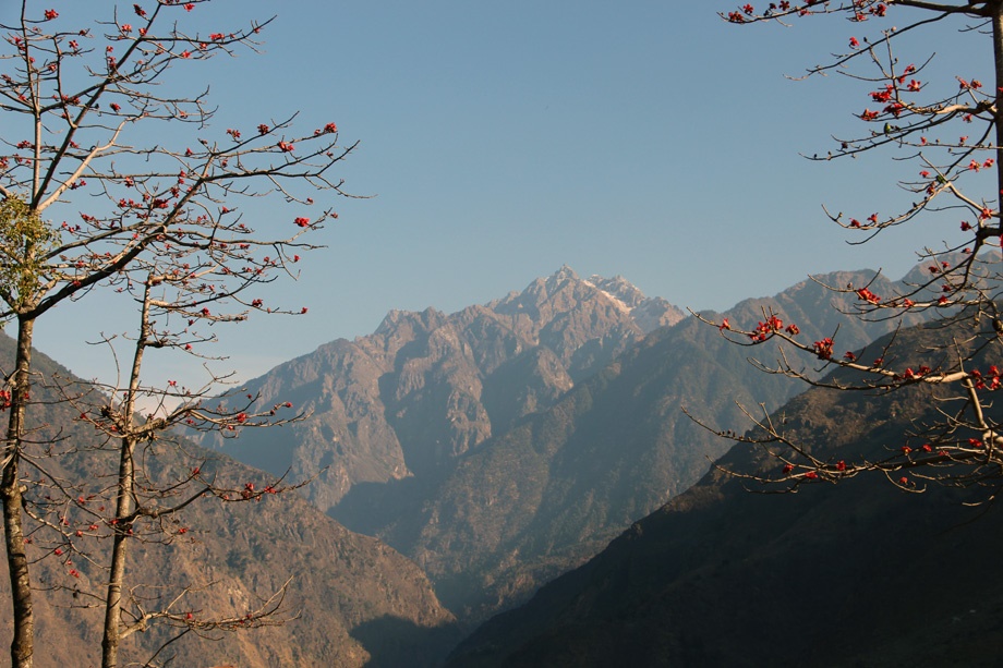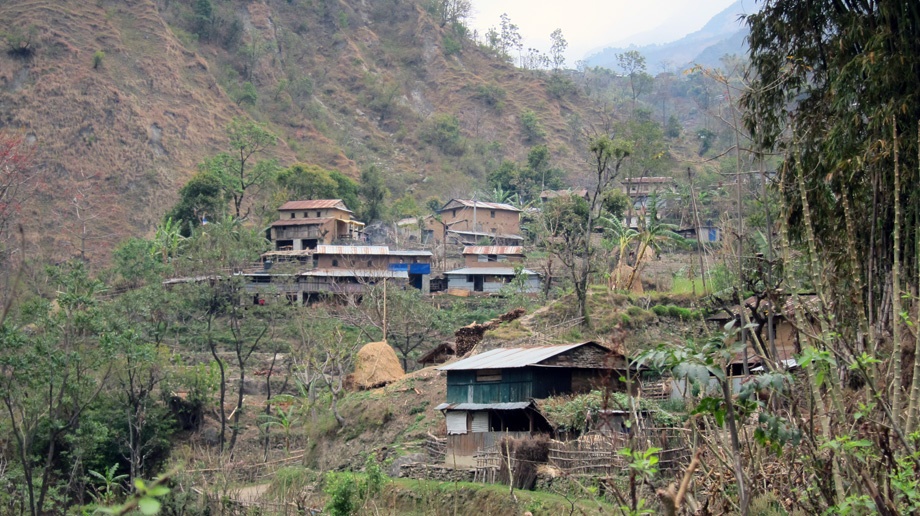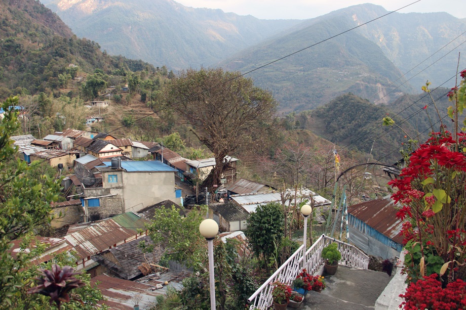 Die Lodge liegt sehr schön. Hier der Blick zurück auf den Ort Bahundanda.