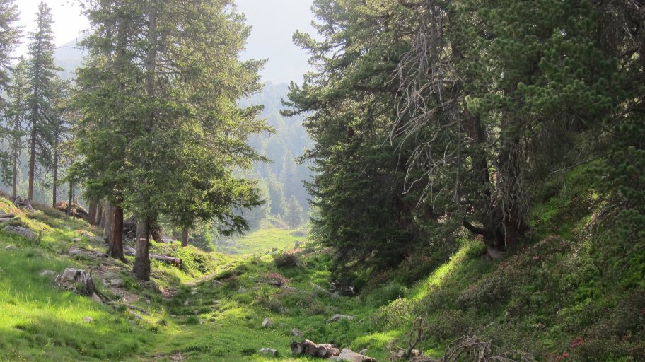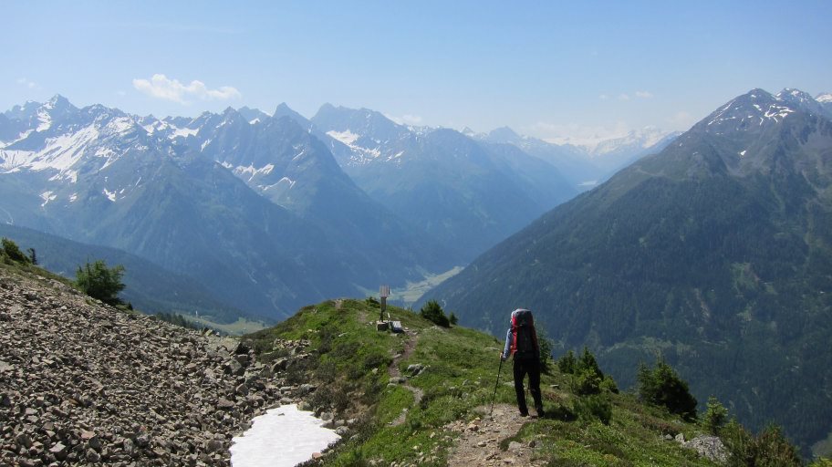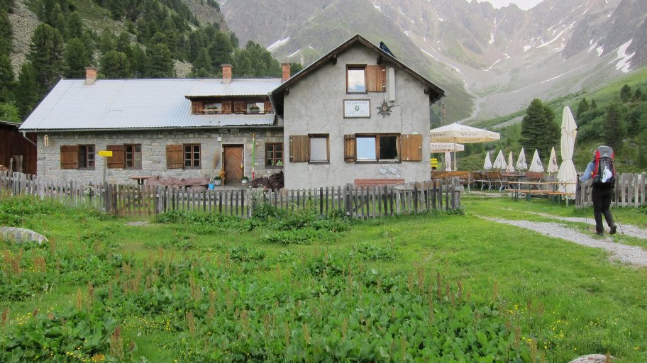 Der Wirt der Ranch "Neu Amerika" ( http://www.neu-amerika.at ) brachte uns nach dem Frühstück noch mit seinem Jeep bis zum Startpunkt des E5 in Piller, da die Ranch doch etwas abseits des Weges liegt. So konnten wir bereits 7:30 Uhr auf dem E5 starten.