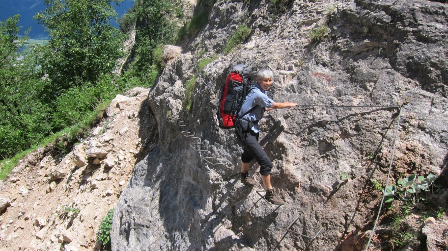 Einige Passagen sind nur über Leitern oder an Felsen mit Seilen begehbar. Wer Klettersteigerfahrungen hat, kann diesen Teil auch gut ohne Sicherung gehen, so wie wir.
