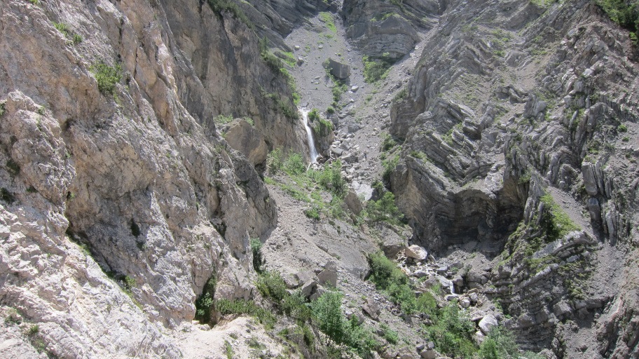 Am oberen Ende der Schlucht ist der Weg auf der linken Seite erkennbar.