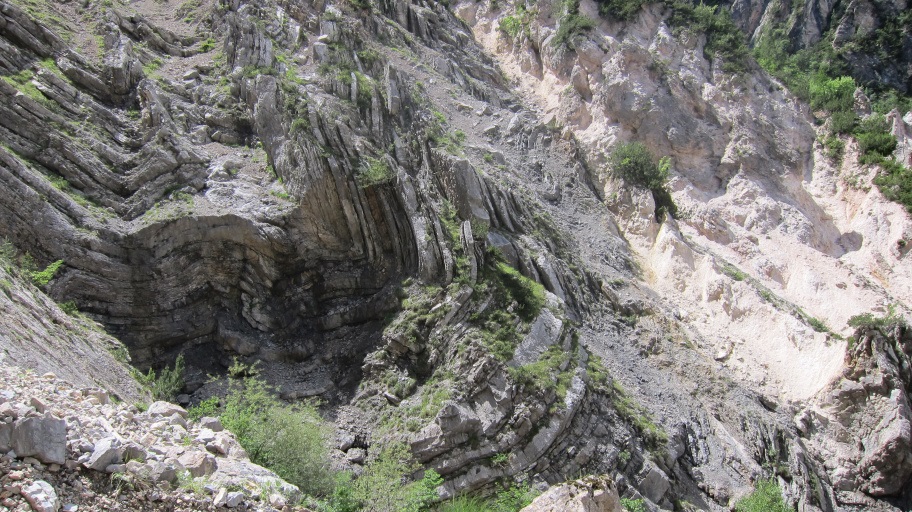 Auf der anderen Talseite sind Steinfaltungen zu sehen.