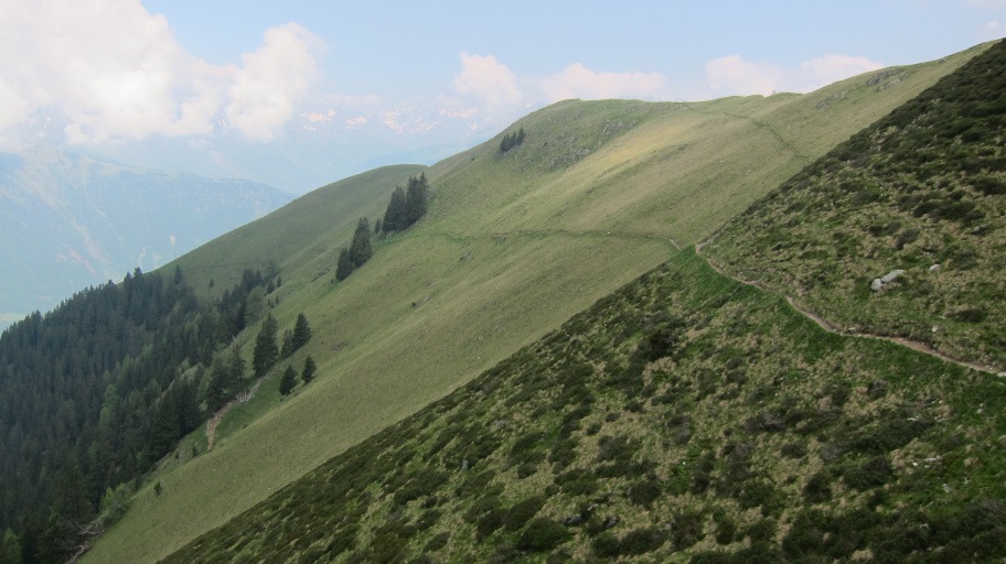 Im Hintergrund ist die Riffelspitze zu sehen. Der Weg wurde jetzt seht gemütlich.