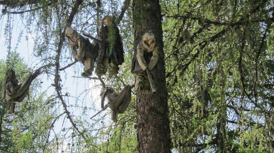Vor Jenesien gibt es eine Sagenwanderweg. Zu den Figuren gab es am Wegrand immer eine Geschichte zu lesen, so auch zu diesen Hexen.